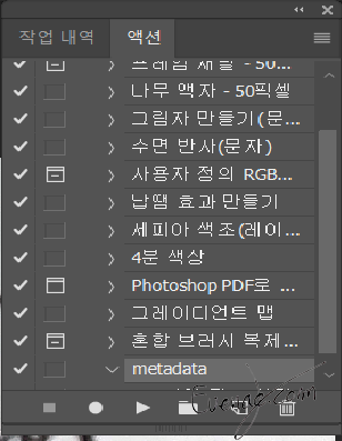 세모 아이콘: 작업하려는 이미지에 액션을 적용 재생.