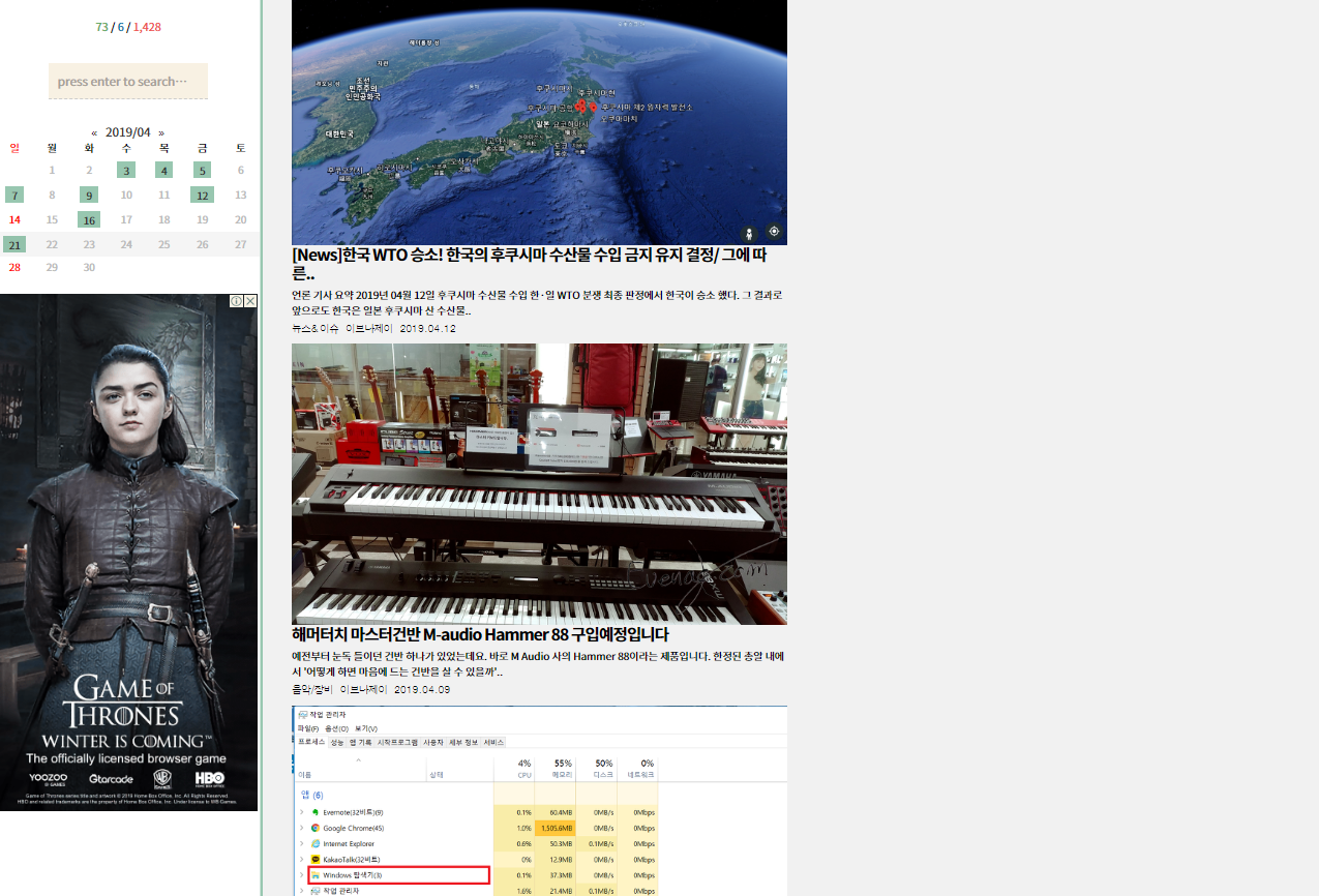 요즘 TV시리즈 '왕좌의 게임'이 마지막 시즌이라 그런지 관련 광고가 많이 붙네요. ( '아리아 스타크' 역의 배우 메이지 윌리암스 ) 어쨌든 잘 적용된 것 같습니다 :D