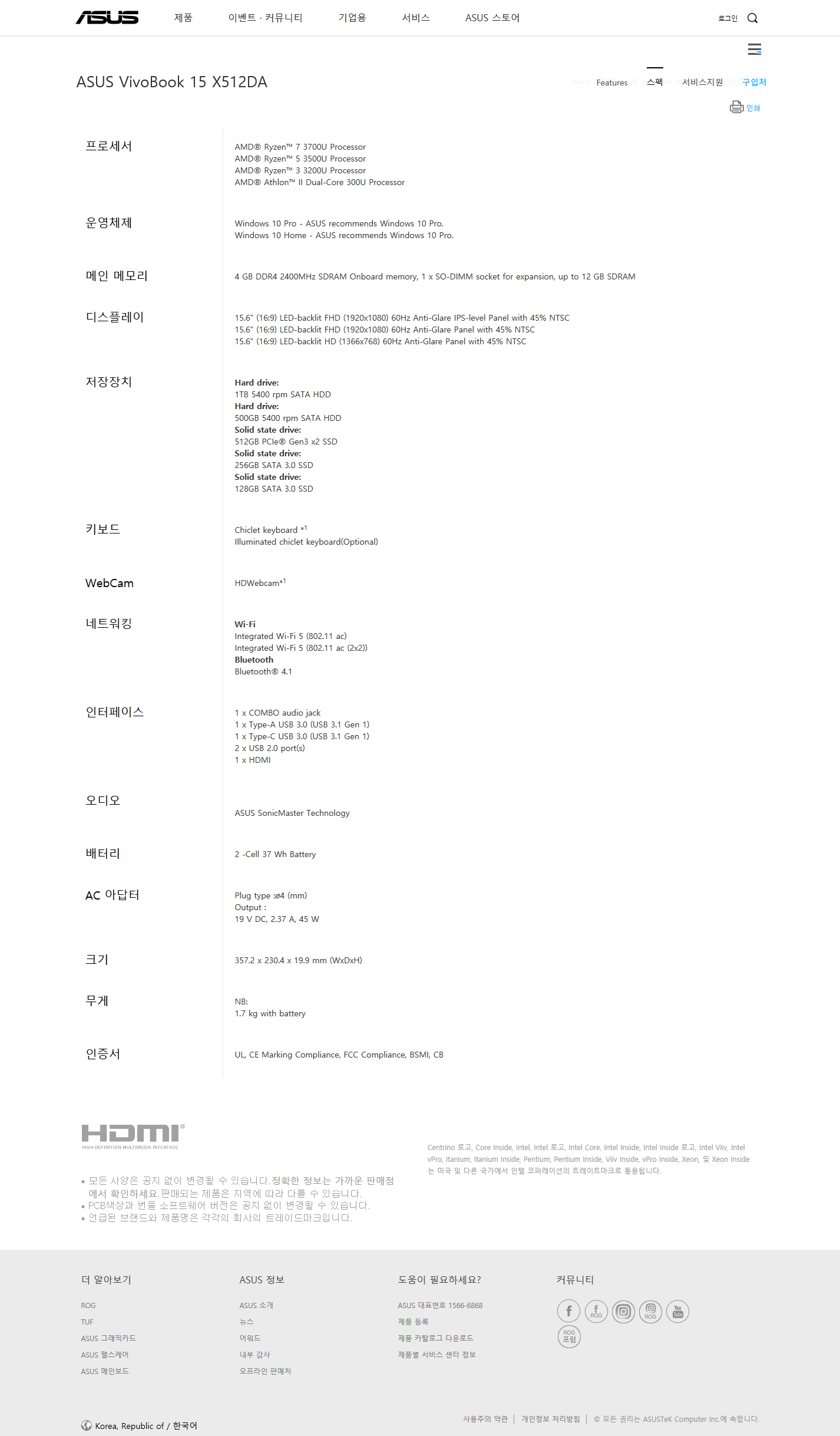 일단 ASUS 공식 홈페이지에 나온 이 시리즈의 스펙들은 다음과 같다.