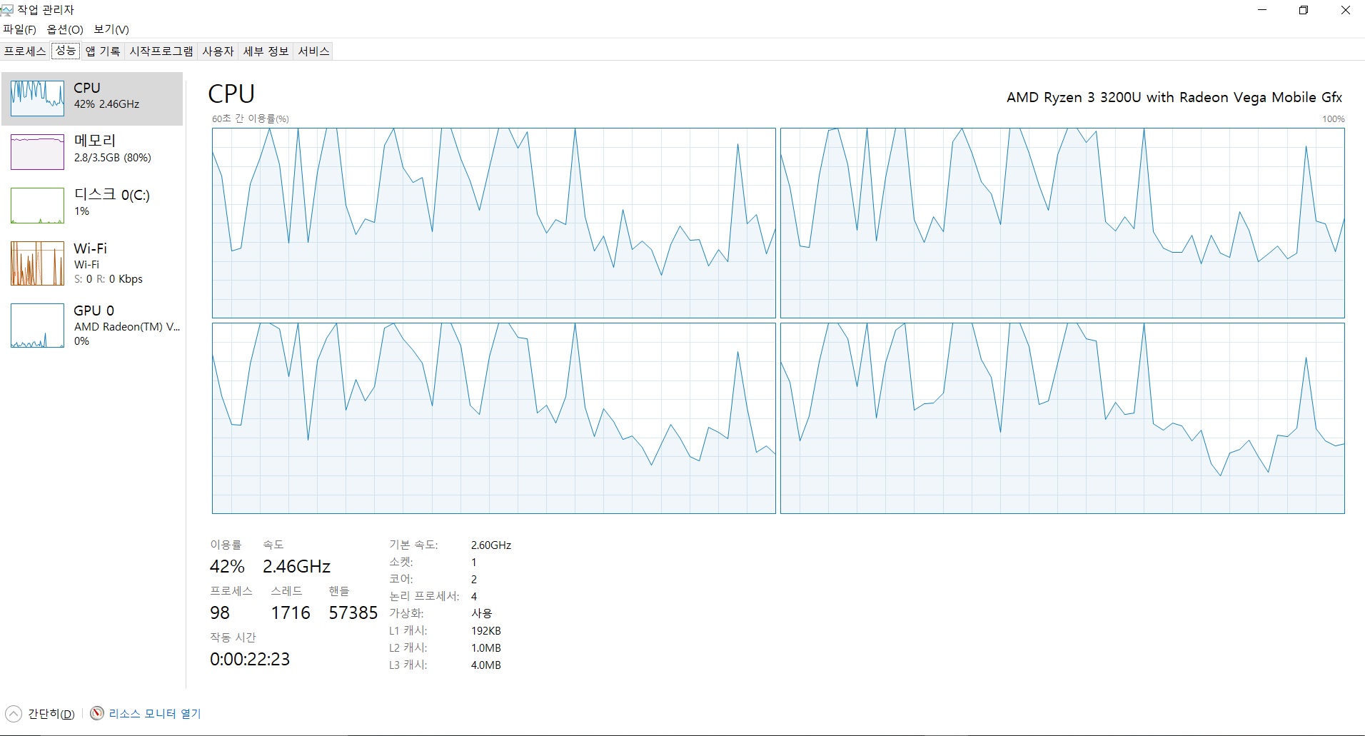 나는 메인 컴퓨터로 사용하는 습관이 있어서인지 창을 엄청 많이 켜둔다. 파이어폭스로 탭 40개이상씩에 백신, 카카오톡, 팟플레이어 등등 이것저것 막 돌려도 준수하게 사용할 수 있다.