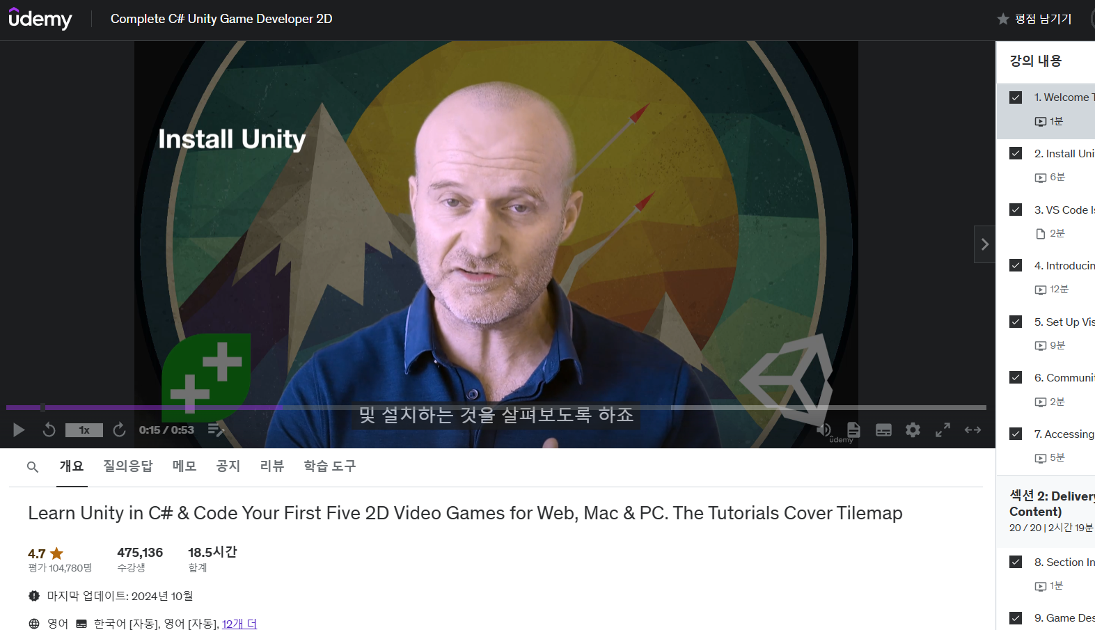 : 1인개발 게임과 부트캠프를 통해 언리얼엔진은 어느 정도 다뤄봤는데, 유니티는 다뤄보지 않아서 유니티 강좌를 골랐다.